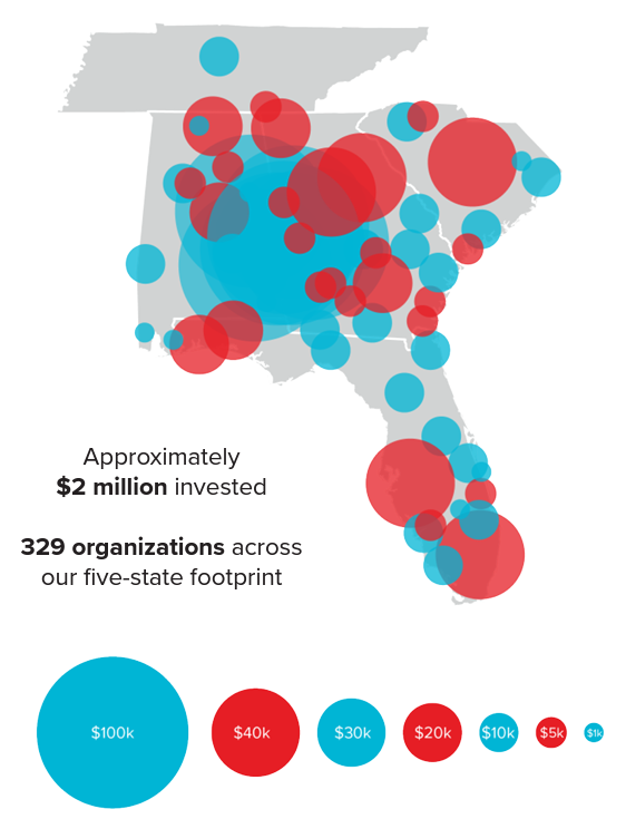 Each year, Synovus invests in communities as we encourage purposeful and meaningful change. As part of these efforts, we have donated more than $11 million over the past four years to organizations throughout Alabama, Georgia, Florida, South Carolina and Tennessee to address critical needs in the communities we serve. Alongside our partners, we're honored to strengthen communities and help individuals reach their full potential.