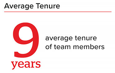 Our commitment to our team members has resulted in a long-term workforce, with an average tenure of nine years of service.