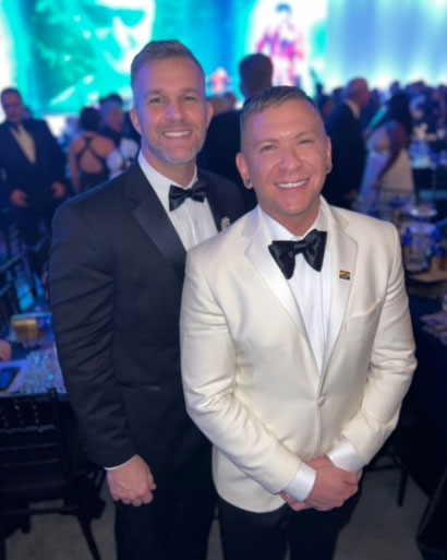 Outside of volunteering, he’s a member of a Stonewall Sports League bowling team, where he also previously played one of his favorite sports, softball. As a child and a St. Johns River State College student in Palatka, Florida, he played softball for two years. He remembers not feeling like he could be himself in the small town, which motivates him to live a rewarding life with his partner, Emmy-winning makeup artist Leo Satkovich, and their two dogs, Bert and Ernie.