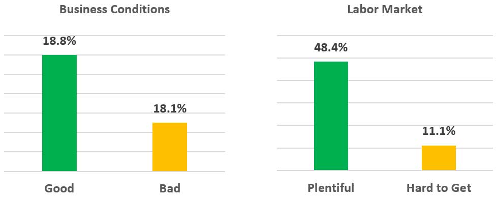 As they witness continuing global and political unrest, consumers are uneasy about its impact on businesses and the overall economy. According to The Conference Board, consumers who believe business conditions are better is only 21.2% which isn’t much higher than the 17.1% who rated them as “bad.” Only 14.8% expect conditions to improve in the next six months. Conversely, 41.3% said jobs are plentiful but only 17.3% expect opportunities to increase.3