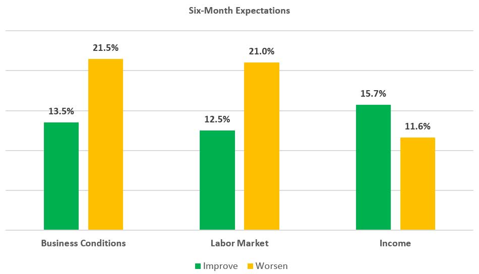 - The Expectations Index measures whether consumers believe income, business and labor will improve in the next six months.