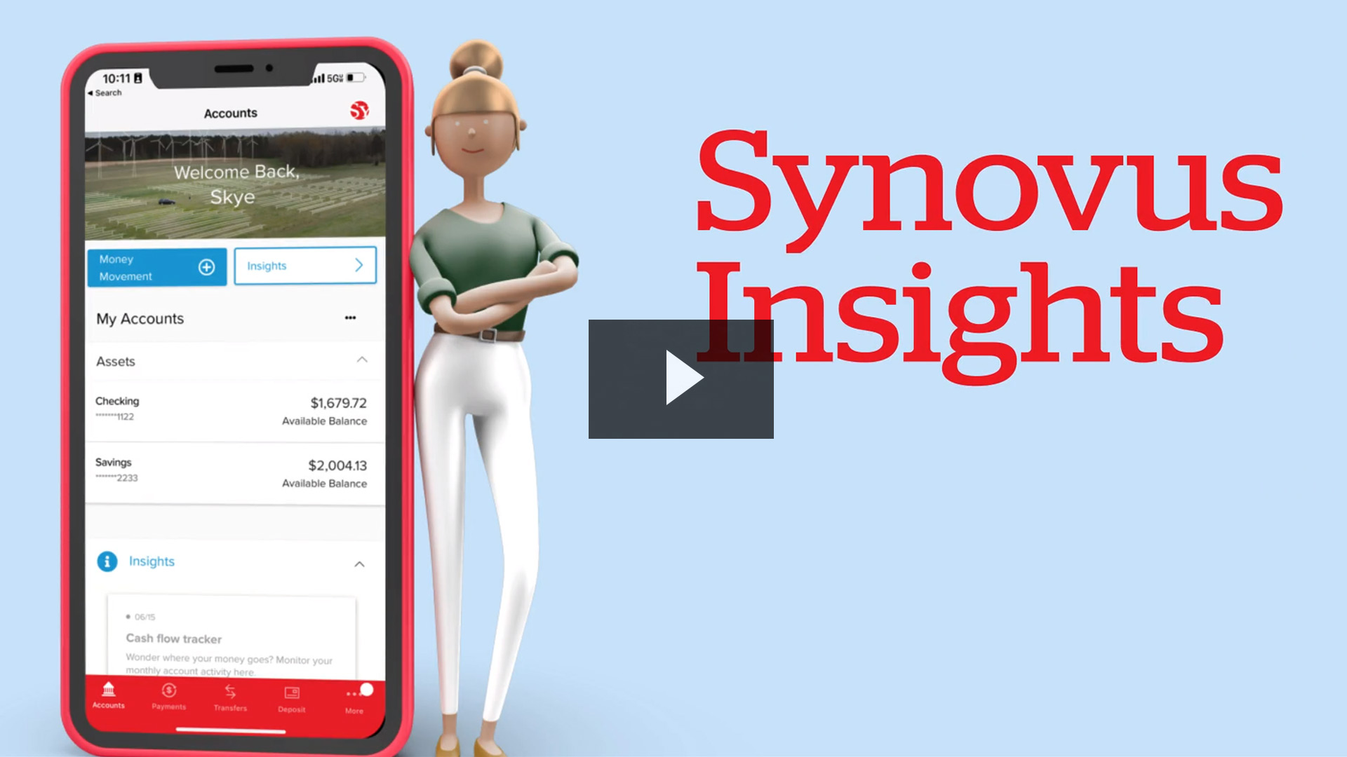 Synovus Insights helps you make informed decisions about your finances by presenting you with tailored options and solutions through notifications, interactive quizzes, and trivia. All while seamlessly integrating with your My Synovus experience.