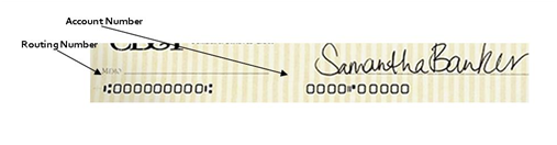 - Make sure the routing number and account information at the bottom of your check is clear of any ink marks or writing.