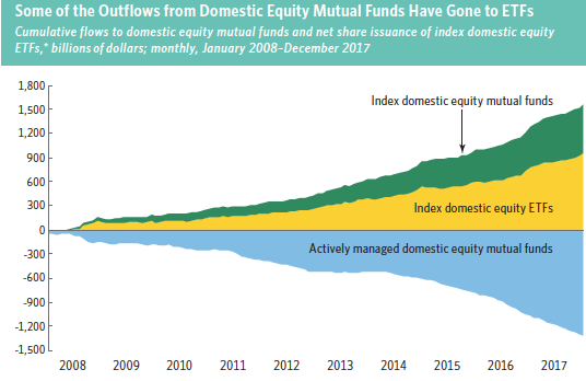 That being said, fees for index funds and ETFs are generally lower when compared to mutual funds. In fact, the Investment Company Institute reports in 2017 the following: