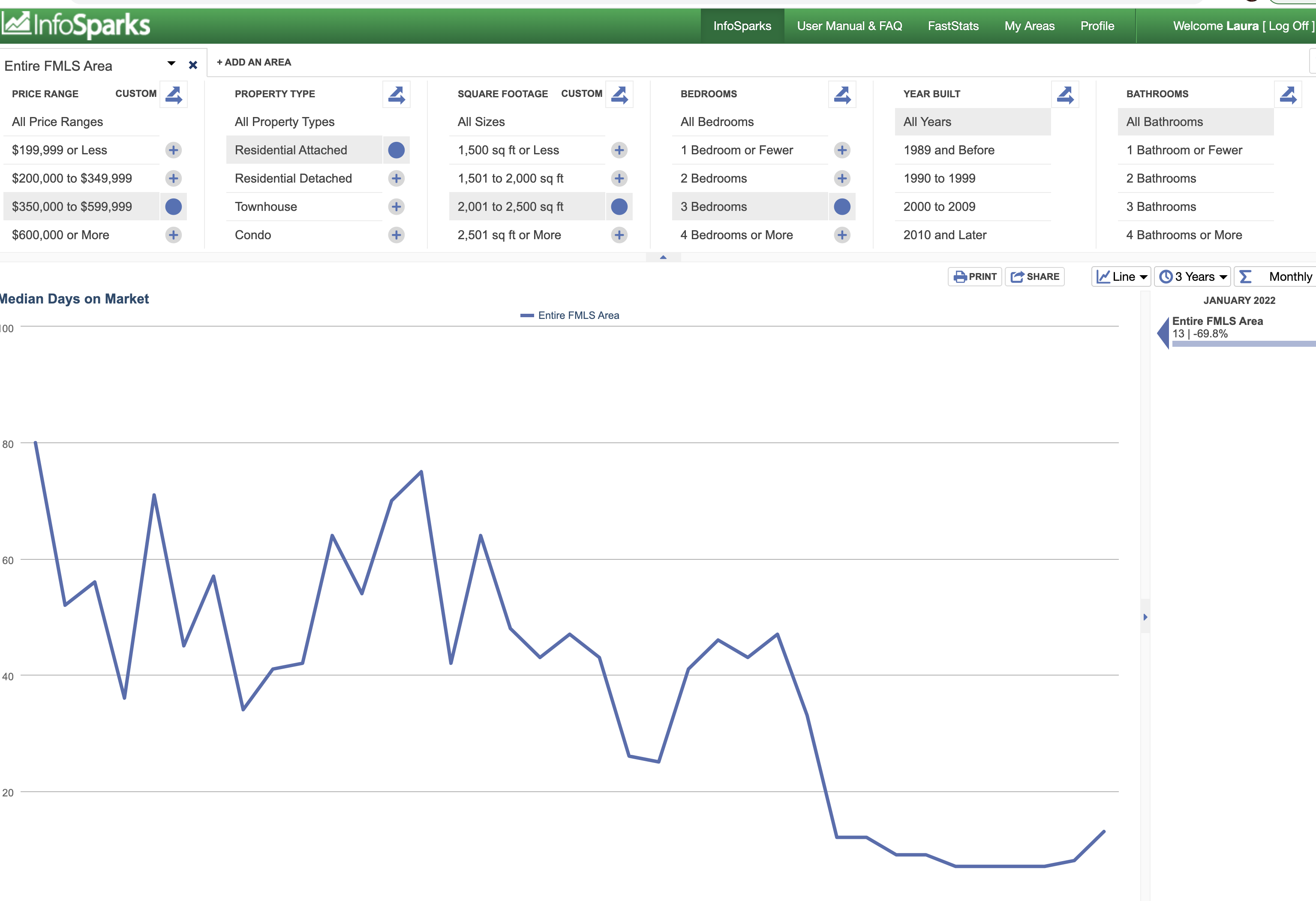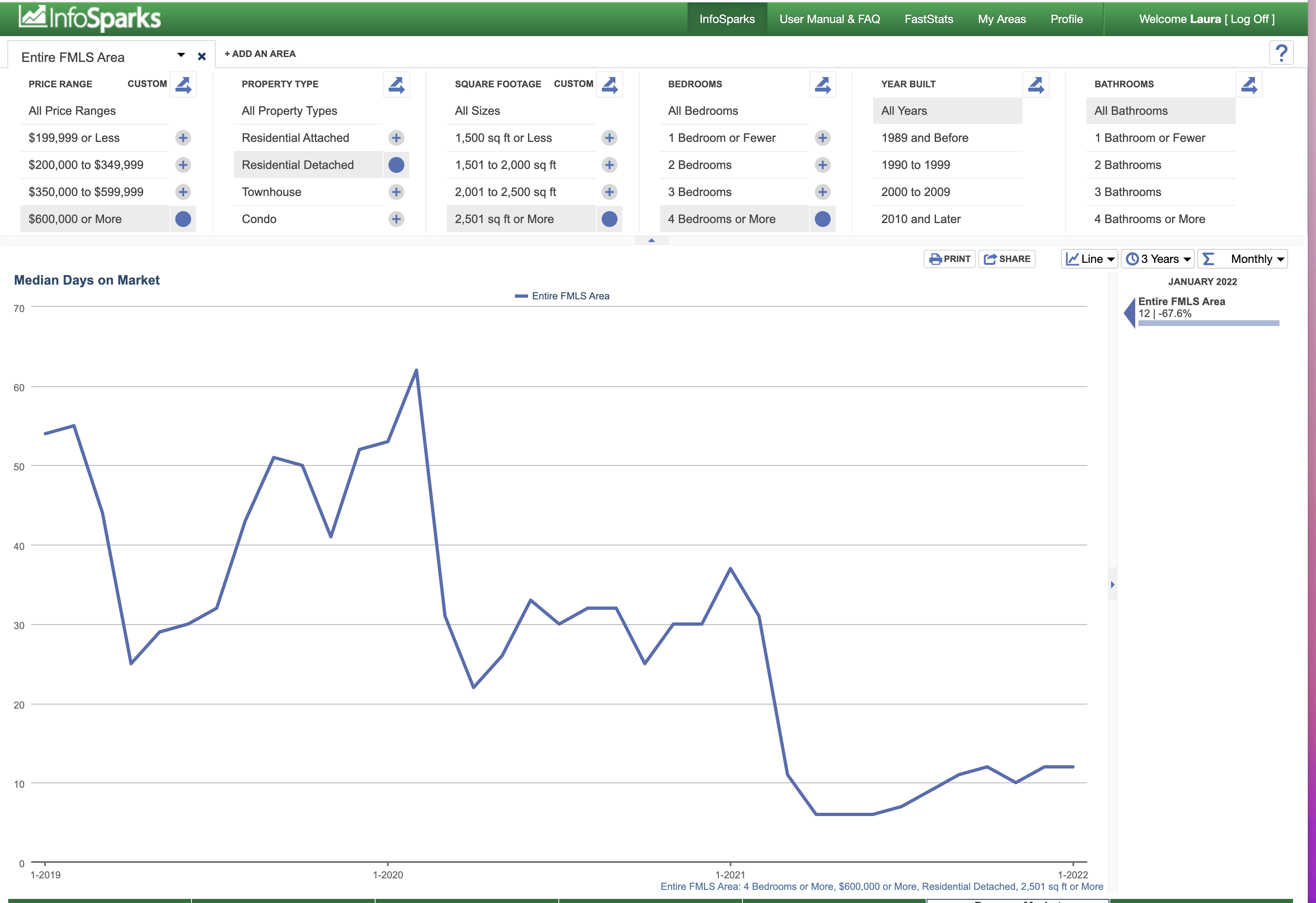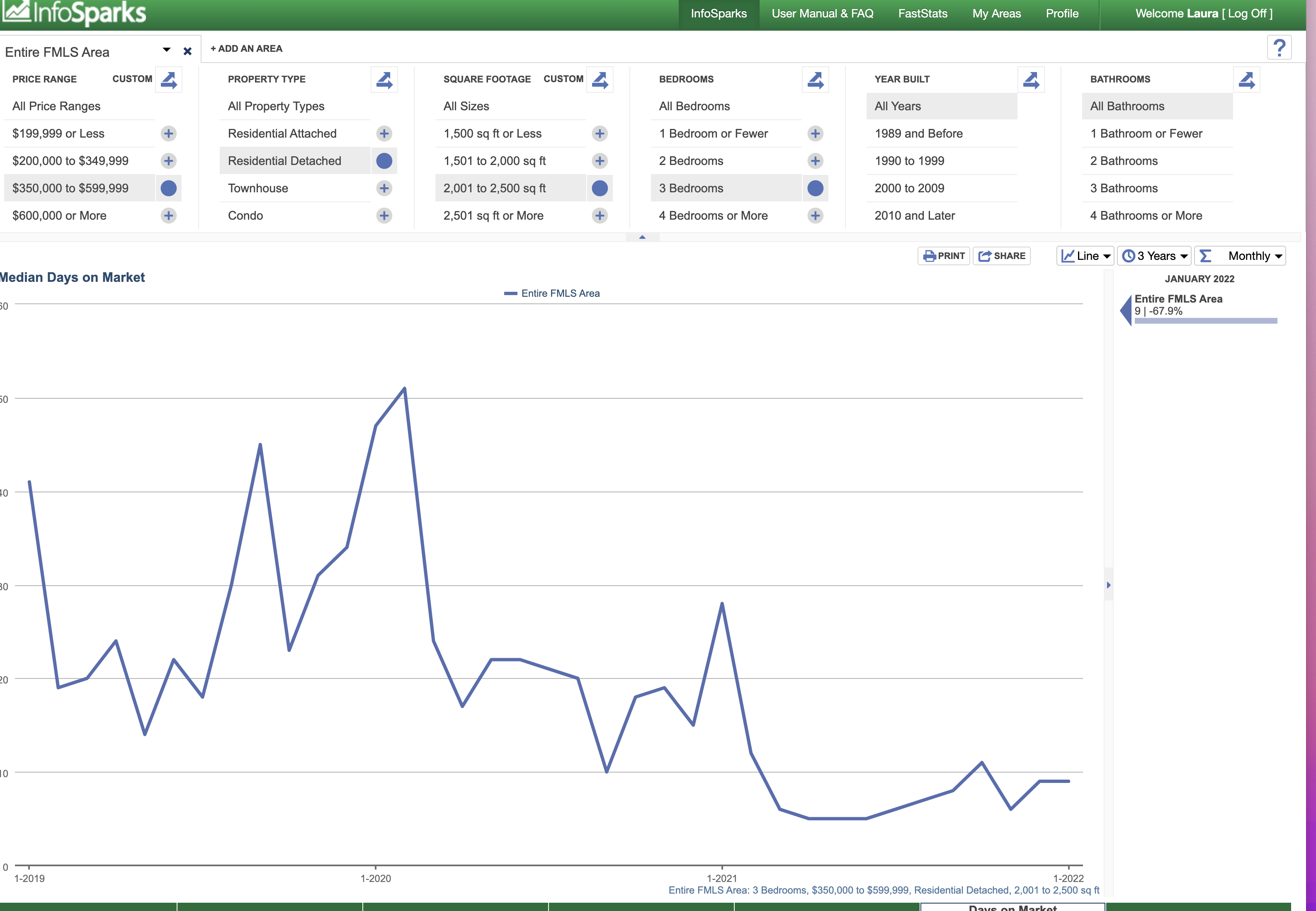 At this lower price point, Atlanta Realtors are reporting multiple offers, sometimes as many as 30, for one property, and winning bids are often selling for well over asking price. The picture isn't much different at this price point for attached homes (townhouses and condos), which were on the market for 70 days in January 2020, 43 days in January 2021 and 13 days in January 2022.6
