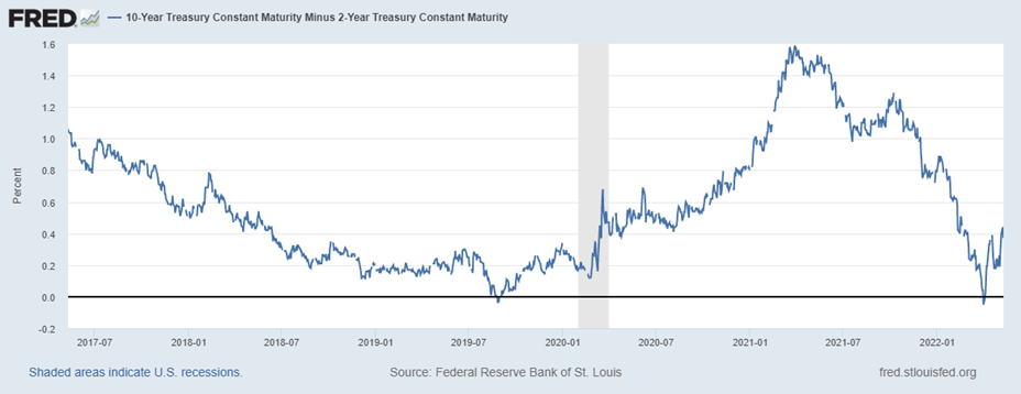 To summarize, it doesn’t necessarily follow that an inverted yield curve will be followed by a recession. It certainly could mean that, in which case unemployment would likely rise and inflation would potentially come down more quickly than many are expecting. But for now, it’s too early to say. The debt market is certainly signaling that change is coming, though it’s often easier to say in hindsight what it meant than at the present time.