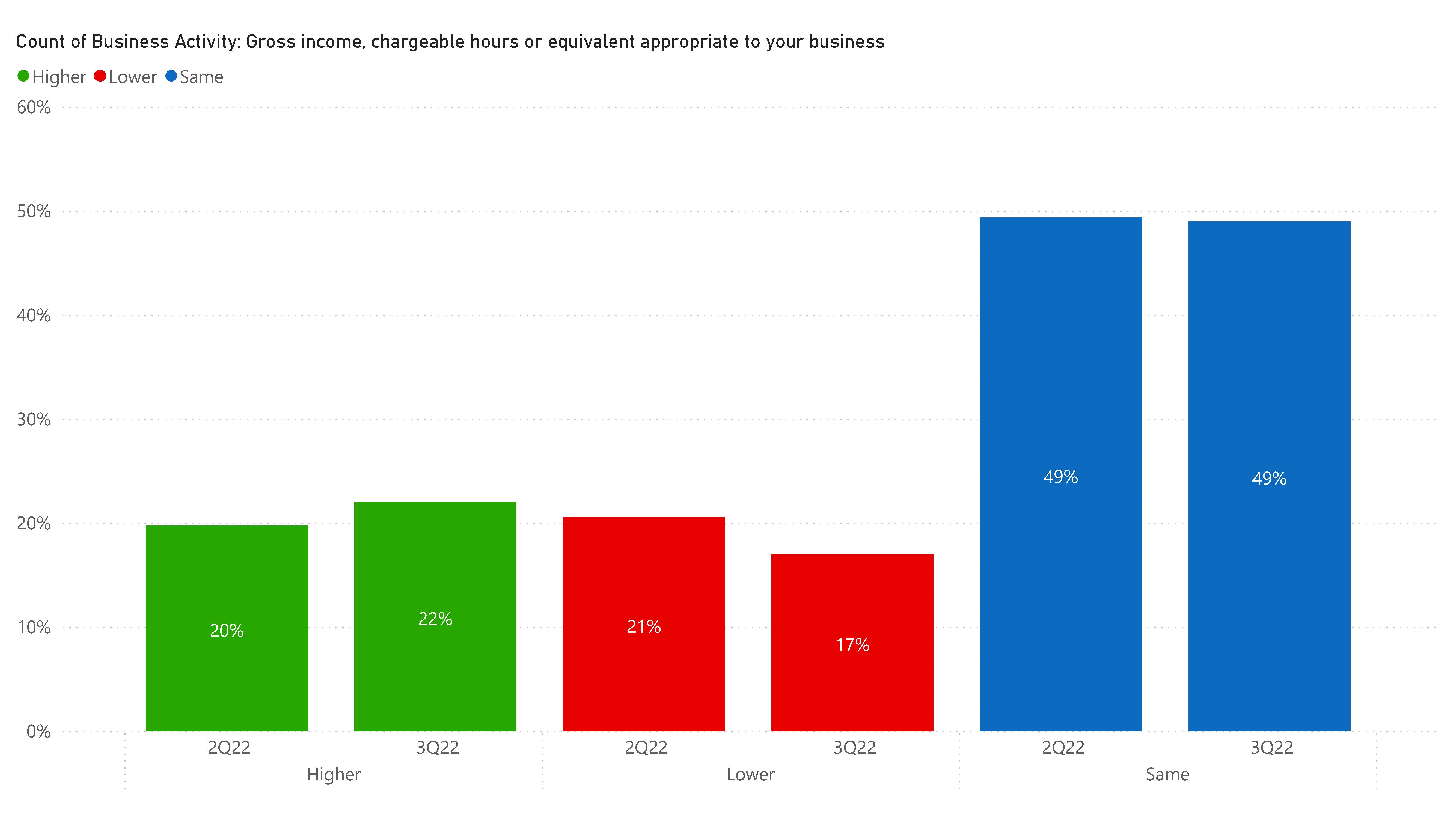 Companies reporting the same or higher volume of business compared to the previous quarter improved marginally, though incoming new business stayed the same.