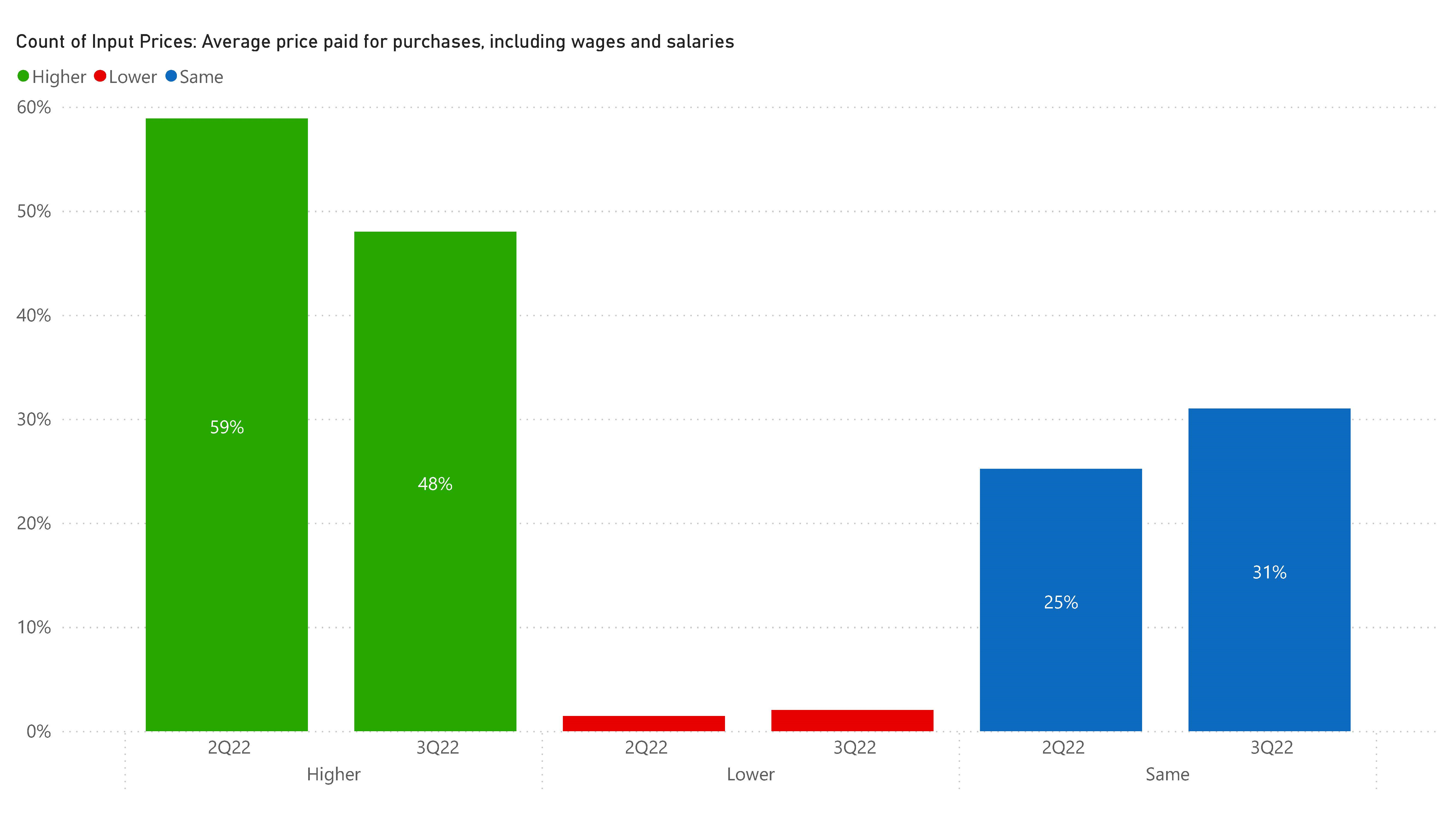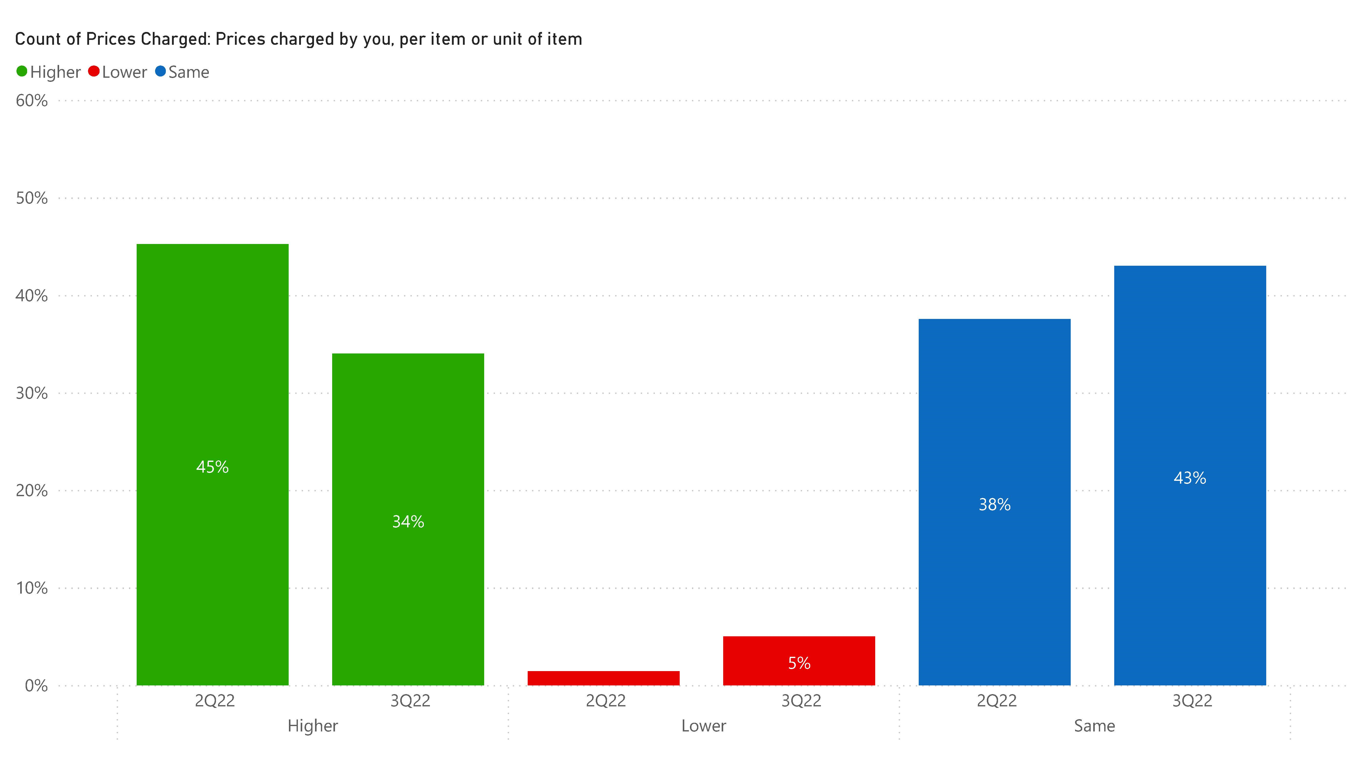 In general, the pandemic environment has never been a function of a lack of demand and the results bear that out. What ails the market is a lack of supply, and that is evident in the level of input prices versus the previous quarter. In Figure 2, you can see that more commercial clients report paying higher input costs quarter over quarter, though that rate is decreasing which could be indicative of slowing demand and/or thawing in frozen supply chains.