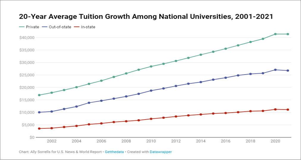 The Biden Administration released their Student Loan Debt Relief plan on Aug. 24, 2022. The plan consists of a three prong strategy designed to help alleviate a modest percentage of the overall $1.7 trillion of outstanding Federal student loan debt. Note that while this plan does provide real relief for some borrowers, it does not address the root of the problem, which is the exponential rising cost of obtaining a college degree (as outlined in the chart below). Those changes would require congressional action via legislation.