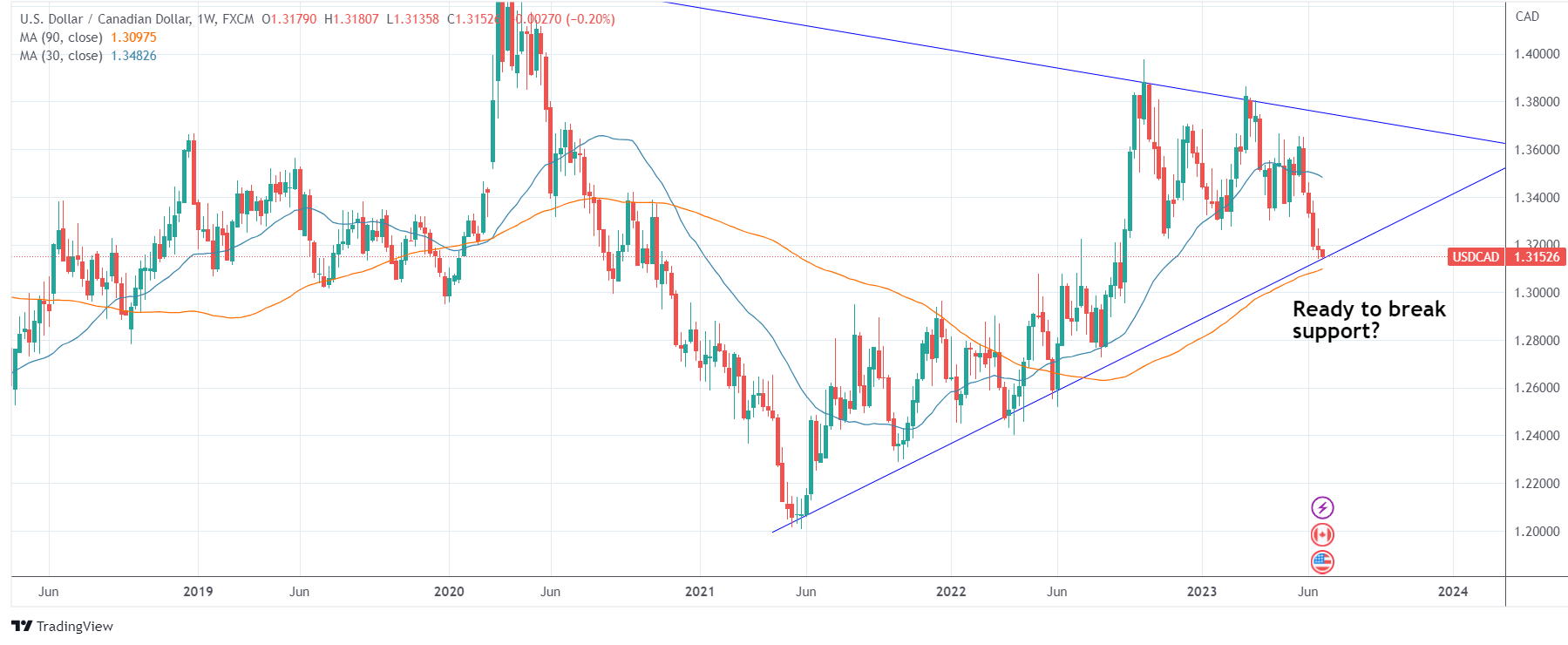 Last month, the Fed decided to pause interest rate hikes, which was mostly expected. Since then, we have seen lower inflation numbers this week (June 26) plus good U.S. employment numbers the week of June 19. However, the Fed did announce two more hikes this year, including one in July, that would put Fed Funds at around 5.6%. After a month and a half of U.S. dollar strength, there are signs that it is about to return to a weakening trend.