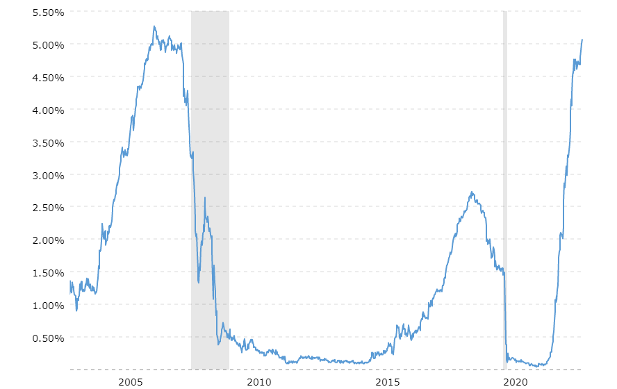 Your investments in the growth stocks of years past may feel like a white knuckle ride into poverty if you have not set the proper asset allocation for your overall risk tolerance. Just as I mentioned in the previous paragraph, the same companies that were financing their growth at extremely low interest rates are now having to finance their growth at interest rates 100% to 150% higher than the low rates of 2020 and 2021. This leads to future corporate growth forecasts being cut for fears of this continued cycle of monetary tightening. Companies that are more established in their business model, who may not need to finance future growth, will fare much better during these economic conditions. These companies are also known a low duration stocks or low beta stocks since the risk of their performance is less impacted by monetary tightening cycles. Cleveland Fed President, Loretta Mester, provided additional commentary on the current Fed policy on taming inflation. She mentions, “I do think we need to be somewhat above 5% and hold there for a time in order to get inflation on the sustainable downward path to 2%.” Based on Mester’s comments, the current monetary tightening cycle will remain in place until the consumer starts to run dry in their cash reserves and/or unemployment increases to levels that weakens consumer demand. This economic slowdown is the recession that everyone has been anticipating since last spring. Even though, the frequency of rate hikes have slowed, a higher for longer rate environment is still a form of monetary tightening and may result in a higher for longer runway for the risk free rate for current investors.