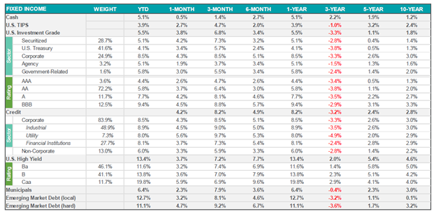 As shown in the chart above, the bulk of fixed income returns occurred in the final three months of 2023. Most high-quality sectors had negative returns up until October, but the strong performance in the fourth quarter helped them achieve relatively "average" returns for the year. The main reason behind the exceptional returns in the final quarter was the Fed Pivot in early November.