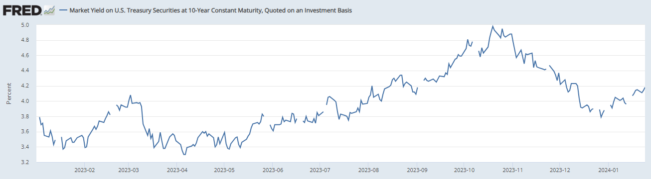 This month's update focuses on the 2024 Fixed Income returns and the current bond market environment in the U.S. In 2023, Treasury yields (10 year) experienced significant volatility, starting and ending around 3.8%. However, credit spreads remained historically low, with attractive overall yields. Municipal bonds, on the other hand, became relatively expensive after substantial returns in November and December. However, there may be better opportunities to enter the municipal bond market later in the quarter. With a downward trend in inflation and the likelihood of the Federal Reserve lowering rates a few times in 2024, conservative fixed income investors can find a favorable opportunity.